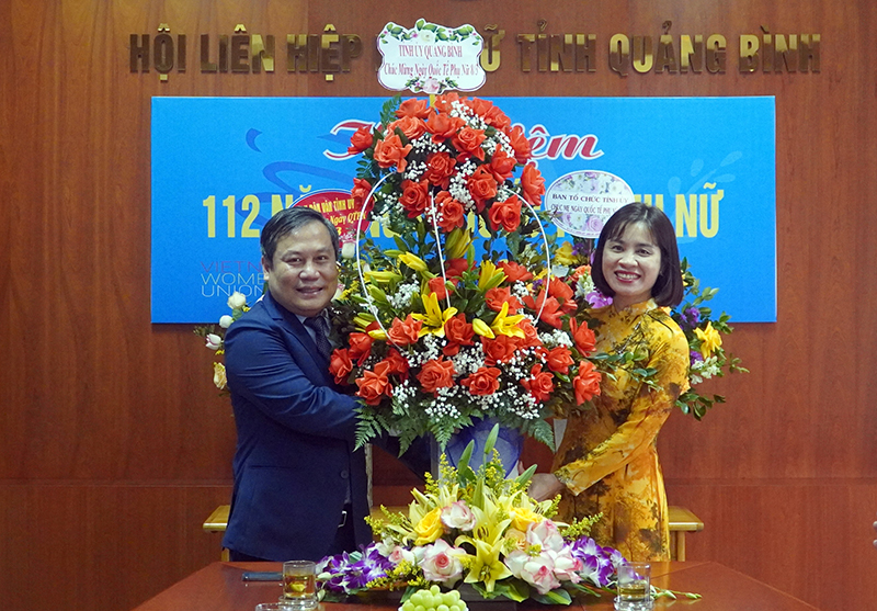 Nhân kỷ niệm 112 năm Ngày Quốc tế Phụ nữ 8/3, đồng chí Bí thư Tỉnh ủy Vũ Đại Thắng đã tặng hoa chúc mừng Hội LHPN tỉnh, đồng thời gửi lời chúc mừng trân trọng nhất đến toàn thể các bà, các mẹ, các chị em phụ nữ toàn tỉnh.