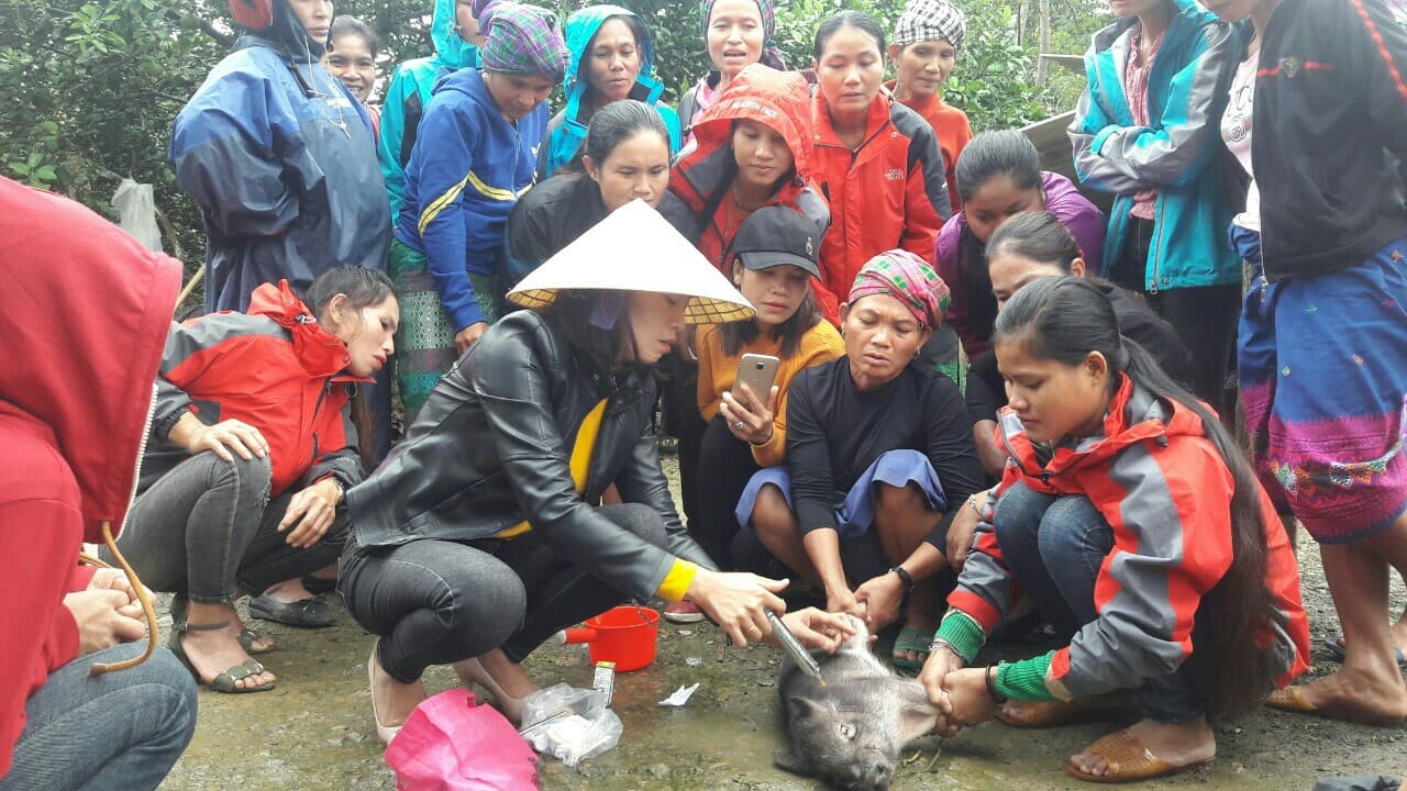 Học viên thực hành cách tiêm phòng cho lợn