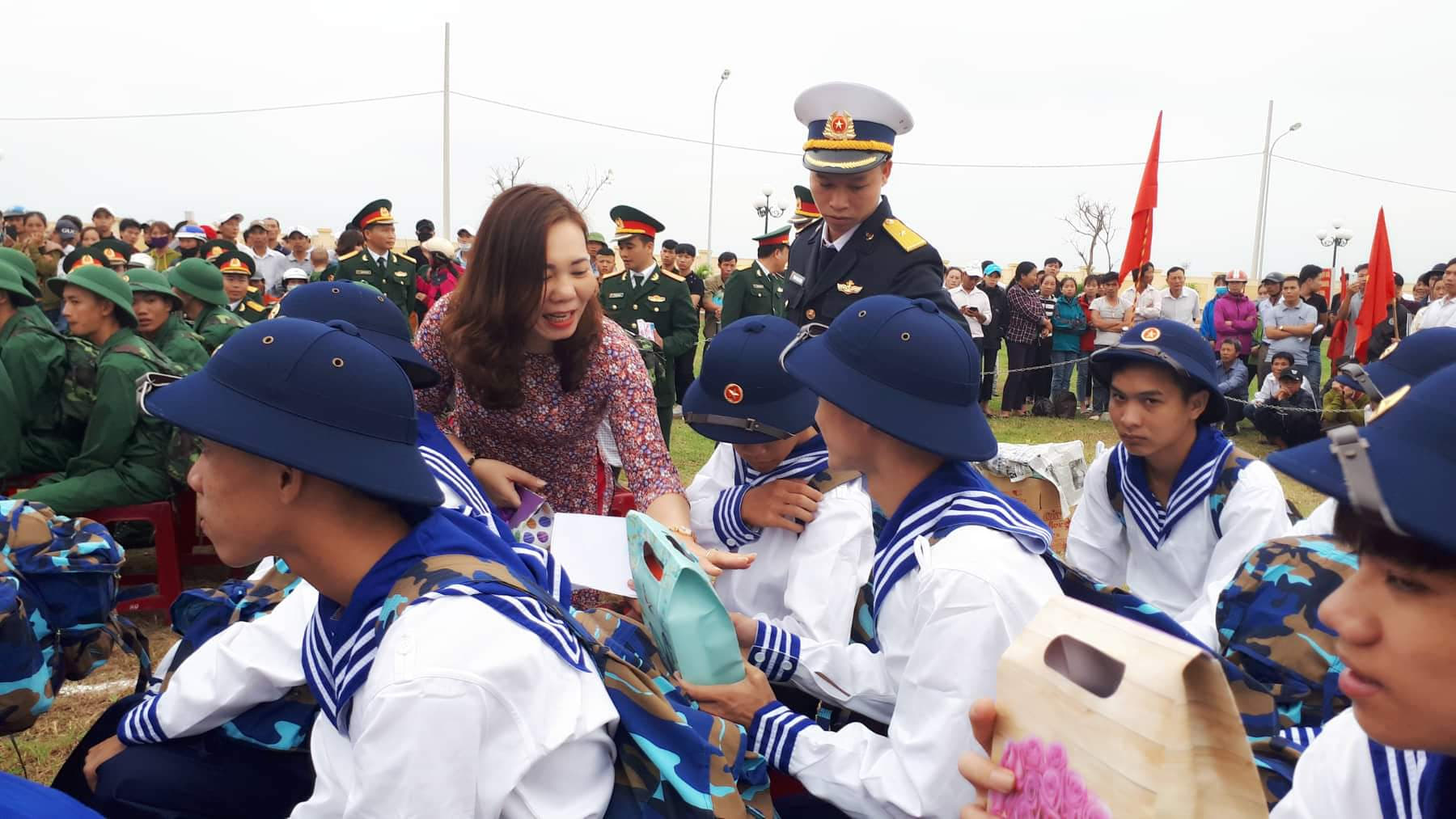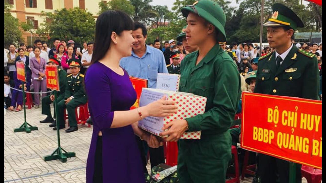 Đ/c Nguyễn Thị Trí Hạnh - Chủ tịch Hội LHPN huyện Bố Trạch tặng quà cho tân binh