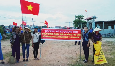 Phụ nữ xã Quảng Phú ra quân hưởng ứng Ngày môi trường
