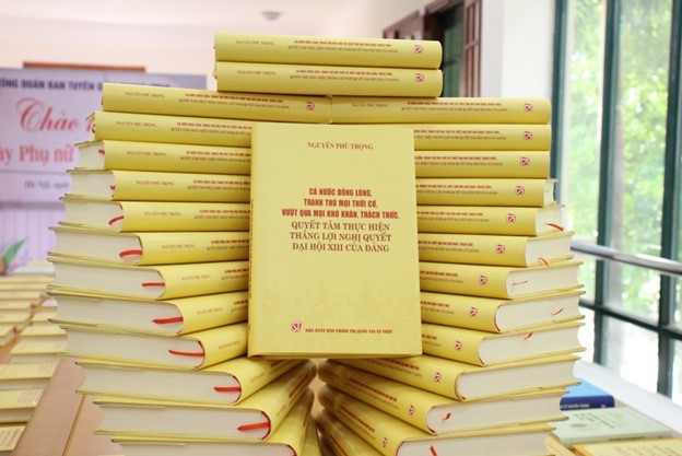 Cuốn sách “Cả nước đồng lòng, tranh thủ mọi thời cơ, vượt qua mọi khó khăn, thách thức, quyết tâm thực hiện thắng lợi Nghị quyết Đại hội XIII của Đảng” của Tổng Bí thư Nguyễn Phú Trọng có dung lượng hơn 500 trang.