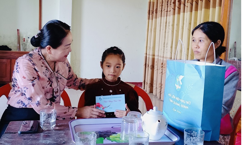 Nhân dịp Tết Nguyên đán Giáp Thìn 2024 đang đến gần, vừa qua, Hội Liên hiệp phụ nữ tỉnh Quảng Bình tổ chức các đoàn thăm, chúc Tết và tặng 110 suất quà cho cán bộ, hội viên phụ nữ nghèo, nữ cựu thanh niên xung phong có hoàn cảnh khó khăn trên địa bàn toàn tỉnh và 22 suất quà cho trẻ mồ côi trong Chương trình “Mẹ đỡ đầu”, với tổng trị giá 121 triệu đồng.