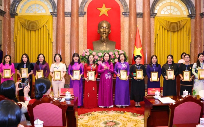 Bày tỏ niềm vui khi gặp mặt các nữ cán bộ tiêu biểu, Phó Chủ tịch nước cho biết, sinh thời, Chủ tịch Hồ Chí Minh luôn dành sự quan tâm và tình cảm đặc biệt đối với phụ nữ Việt Nam, tặng phụ nữ Việt Nam 8 chữ vàng "anh hùng, bất khuất, trung hậu, đảm đang"; "Non sông gấm vóc Việt Nam do phụ nữ ta, trẻ cùng già, ra sức dệt thêu mà thêm tốt đẹp, rực rỡ". Qua đó, Người đã khái quát tất cả truyền thống tốt đẹp, đóng góp to lớn, quan trọng của phụ nữ Việt Nam trong lịch sử dựng nước và giữ nước của dân tộc cũng như trong sự nghiệp xây dựng và bảo vệ Tổ quốc.