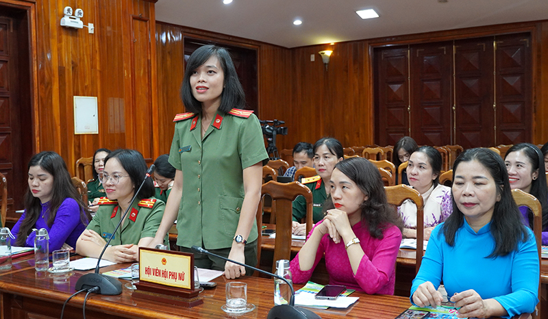 Để tiếp tục phát huy vai trò của cán bộ, hội viên phụ nữ tham gia góp ý xây dựng Đảng, chính quyền trong sạch, vững mạnh, phát triển KT-XH, giữ vững an ninh chính trị, trật tự an toàn xã hội trên địa bàn trong thời kỳ thực hiện chuyển đổi số, đồng chí Chủ tịch UBND tỉnh đề nghị các cấp ủy, chính quyền và cán bộ, hội viên phụ nữ cần quan tâm thực hiện tốt 4 nhiệm vụ. Trong đó, đề nghị người đứng đầu cấp ủy, chính quyền các cấp, thủ trưởng các sở, ban, ngành tăng cường hoạt động đối thoại trực tiếp với cán bộ, hội viên phụ nữ để kịp thời có những giải pháp cụ thể nâng cao chất lượng công tác lãnh đạo, chỉ đạo của cấp ủy, công tác quản lý, điều hành của chính quyền, tạo sự đồng thuận cao trong xã hội.