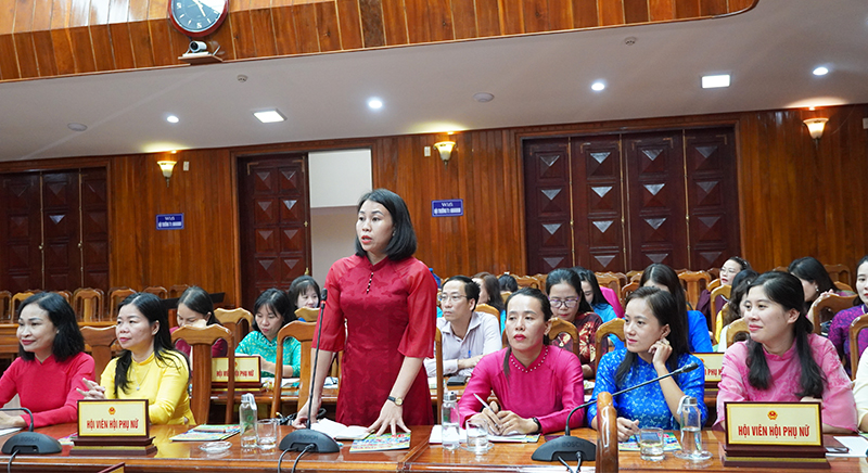 Đại biểu phụ nữ trình bày ý kiến tại hội nghị.