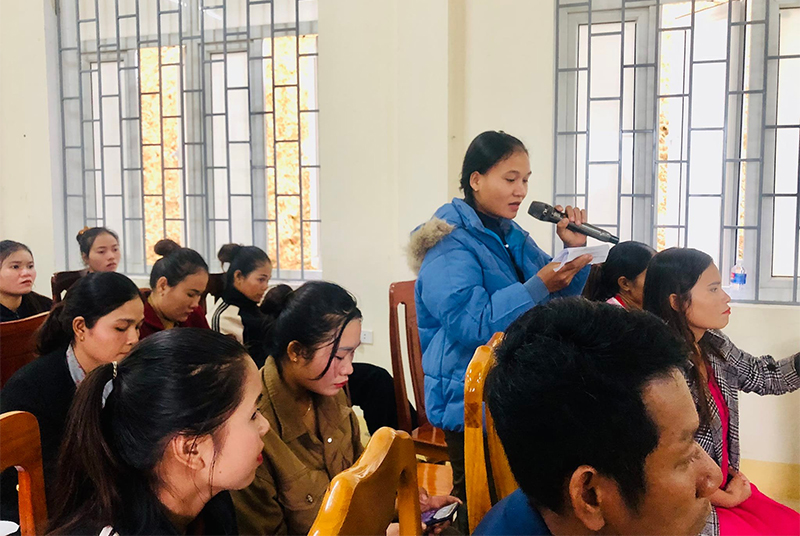 Đúng vào ngày diễn ra hội nghị, sự có mặt đông đủ của đại diện lãnh đạo chính quyền, Đảng ủy xã và các ban, ngành, đoàn thể địa phương là niềm động viên, khích lệ lớn đối với chị em. Nhiều chị em đã mạnh dạn đưa ra những câu hỏi, trình bày ý kiến, tâm tư, nguyện vọng chính đáng, như: Những hưởng lợi từ dự án 8; phòng, chống tảo hôn và hôn nhân cận huyết thống hiệu quả; ĐBDTTS vay vốn ưu đãi để sản xuất cần theo quy trình nào?...