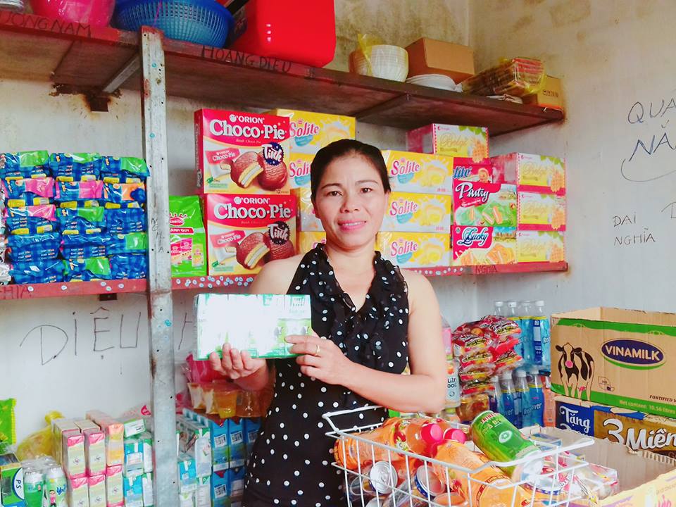 Chị Võ Hoàng Diệu bên cửa hàng tạp hóa
