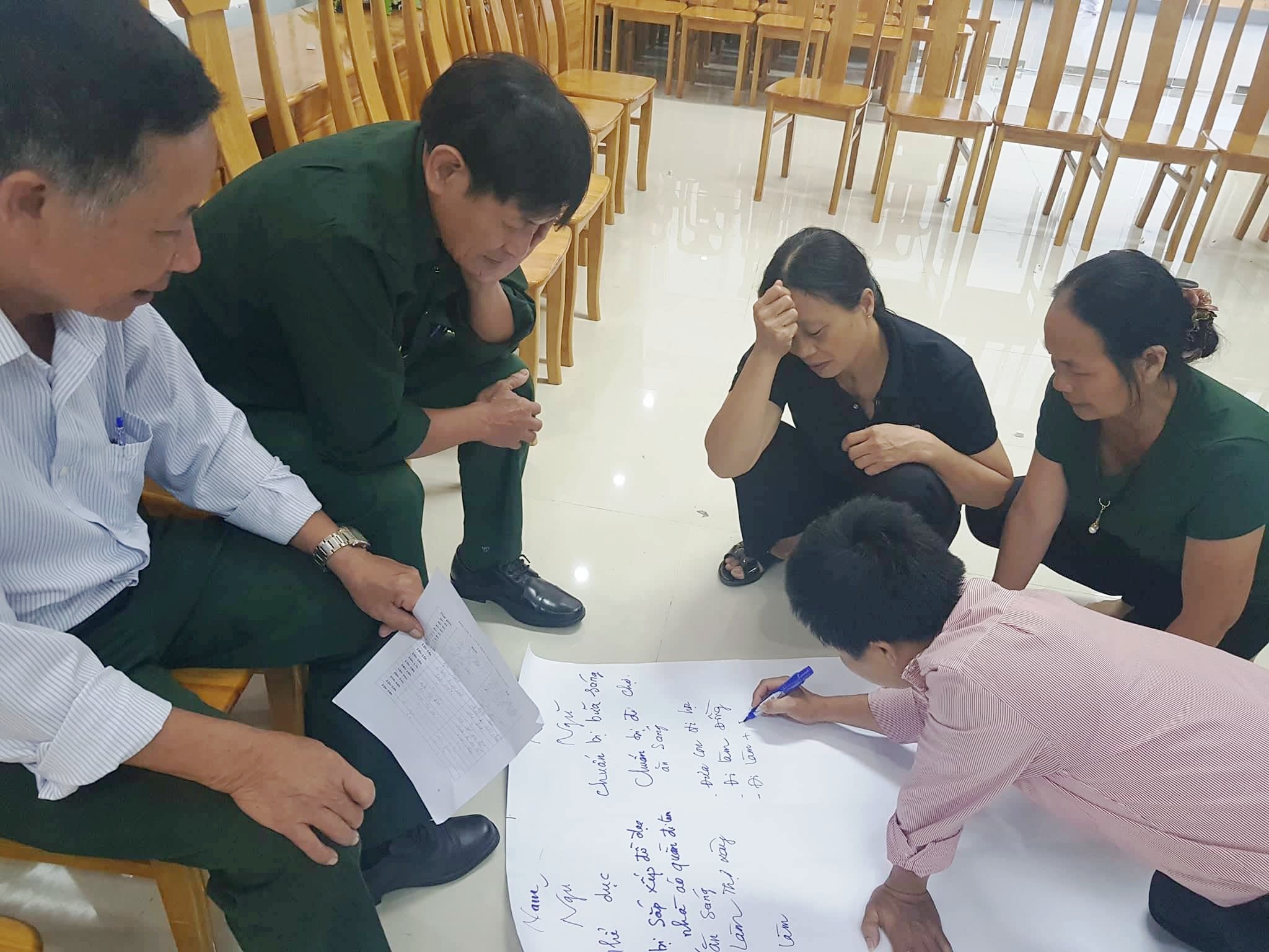 Trong quá trình tập huấn, Ban Tổ chức bố trí 01 buổi cho các học viên thực hành tại xã Hiền Ninh nhằm đánh giá kết quả tập huấn. Tại buổi thực hành, với những kỹ năng, kiến thức được tiếp thu trong những ngày qua, các học viên đã hoàn thành xuất sắc vai trò là thúc đẩy viên của mình.