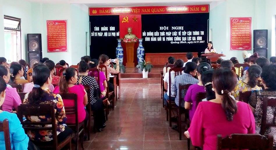 Chiều ngày 24/9, Hội LHPN TP. Đồng Hới phối hợp với Hội LHPN tỉnh và Sở Tư pháp Quảng Bình chức Hội nghị bồi dưỡng kiến thức pháp luật về tiếp cận thông tin Bình đẳng giới và phòng chống bạo lực gia đình cho 100 cán bộ, hội viên phụ nữ, ban chủ nhiệm câu lạc bộ Phụ nữ với pháp luật trên địa bàn thành phố Đồng Hới.