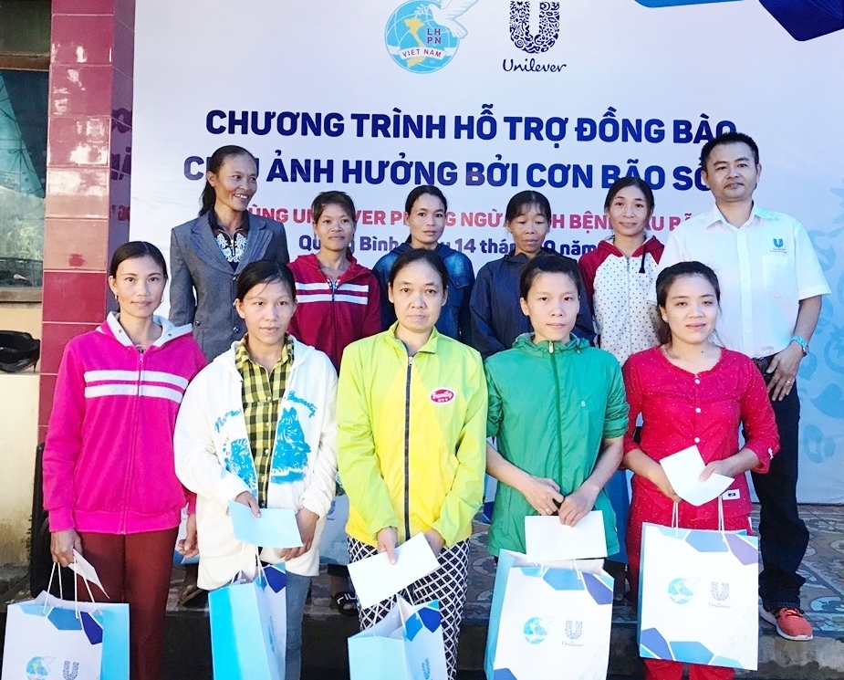 Nhằm góp phần khắc phục hậu quả của cơn bão số 10 trên địa bàn tỉnh Quảng Bình, được sự quan tâm của TW Hội LHPN Việt Nam, Hội LHPN tỉnh Quảng Bình phối hợp với Quỹ Unilever Việt Nam tổ chức đoàn đến thăm, chia sẻ, động viên và trao tặng 800 suất quà cho các gia đình hội viên phụ nữ bị thiệt hại nặng tại 02 xã Xuân Hóa và Yên Hóa thuộc huyện Minh Hóa, với tổng trị giá 480 triệu đồng.