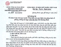Ngày 11/8/2022, Hội đồng phối hợp phổ biến, giáo dục pháp luật tỉnh Quảng Bình đã ban hành Kế hoạch số 158/KH-HĐPH về  tổ chức Cuộc thi trực tuyến “Tìm hiểu các quy định của pháp luật về phòng, chống ma túy” trên địa bàn tỉnh Quảng Bình.