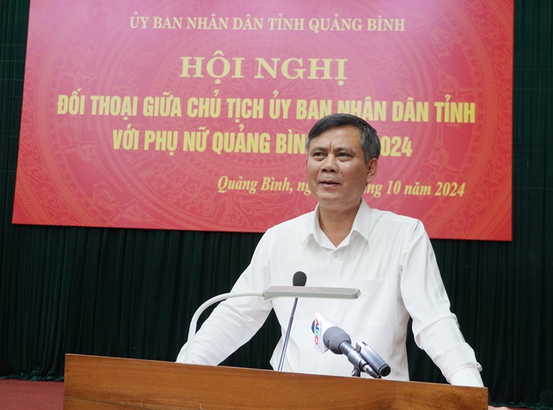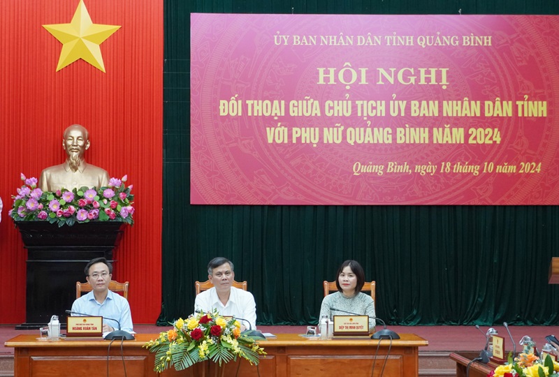 Đó là chủ đề của hội nghị đối thoại giữa Chủ tịch UBND tỉnh với phụ nữ Quảng Bình năm 2024 được UBND tỉnh tổ chức vào sáng ngày 18/10/2024 do đồng chí Trần Thắng, Chủ tịch UBND tỉnh chủ trì. Tham dự có đồng chí Hoàng Xuân Tân, Phó Chủ tịch UBND tỉnh cùng đại diện lãnh đạo, cán bộ phụ nữ các sở, ban, ngành; đại diện hội viên phụ nữ trong tỉnh.