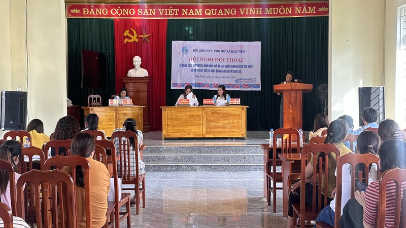 Vừa qua, Hội LHPN tỉnh tổ chức các buổi Hội nghị đối thoại về chính sách giảm nghèo, bình đẳng giới và giải quyết những vấn đề cấp thiết đối với phụ nữ, trẻ em vùng đồng bào dân tộc thiểu số tại các xã: Ngân Thủy (Lệ Thủy), TTNT Việt Trung, TT Phong Nha (Bố Trạch), Thanh Hóa (Tuyên Hóa), Hóa Tiến, Trọng Hóa (Minh Hóa).