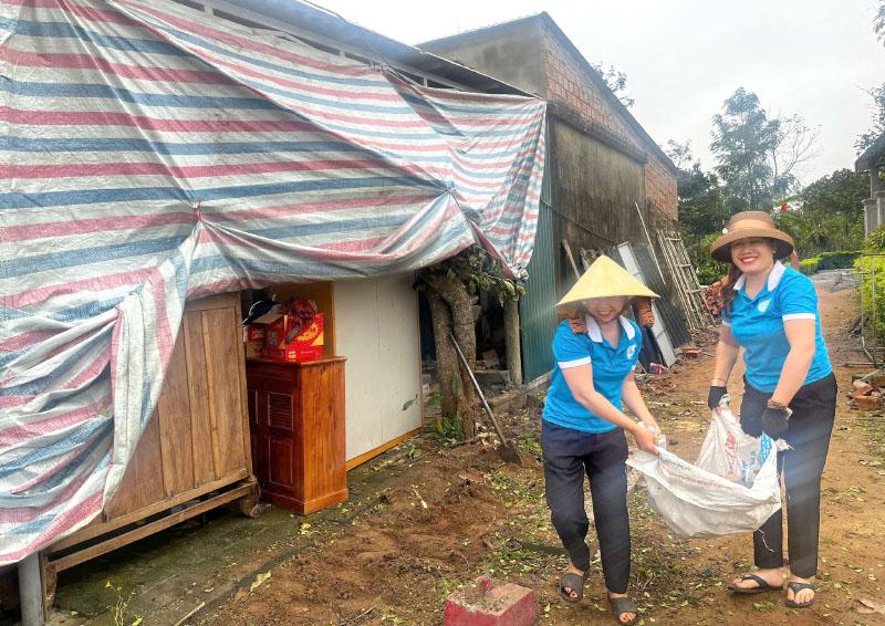 Những ngày này, chị em phụ nữ tại nhiều địa phương trên toàn tỉnh bận rộn hơn so với ngày thường. Tranh thủ sau mỗi buổi làm, chị em lại ghé các căn nhà đang được sửa chữa, xây dựng mới giúp đỡ dọn dẹp,...
