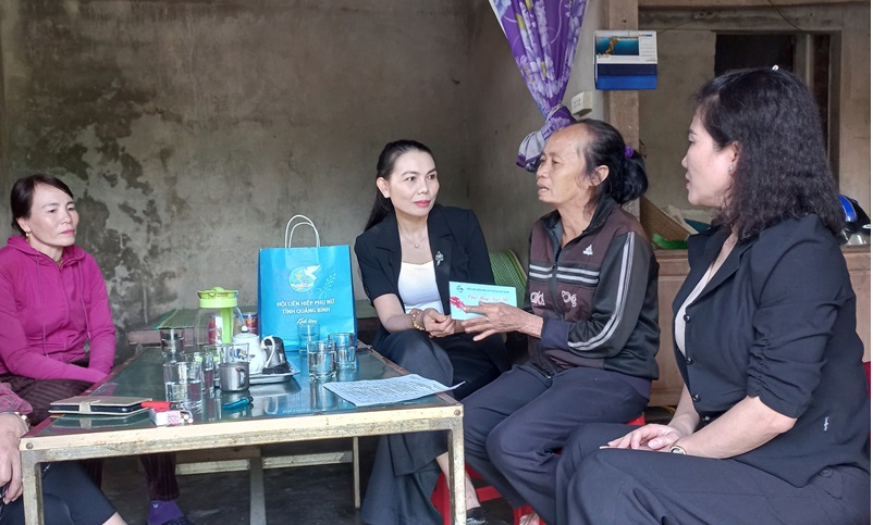 Nhân dịp Tết Nguyên đán Giáp Thìn 2024 đang đến gần, vừa qua, Hội Liên hiệp phụ nữ tỉnh Quảng Bình tổ chức các đoàn thăm, chúc Tết và tặng 110 suất quà cho cán bộ, hội viên phụ nữ nghèo, nữ cựu thanh niên xung phong có hoàn cảnh khó khăn trên địa bàn toàn tỉnh và 22 suất quà cho trẻ mồ côi trong Chương trình “Mẹ đỡ đầu”, với tổng trị giá 121 triệu đồng.