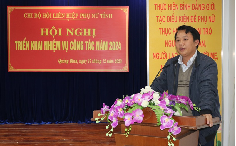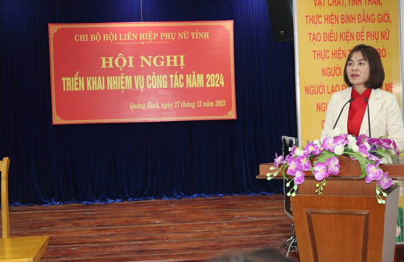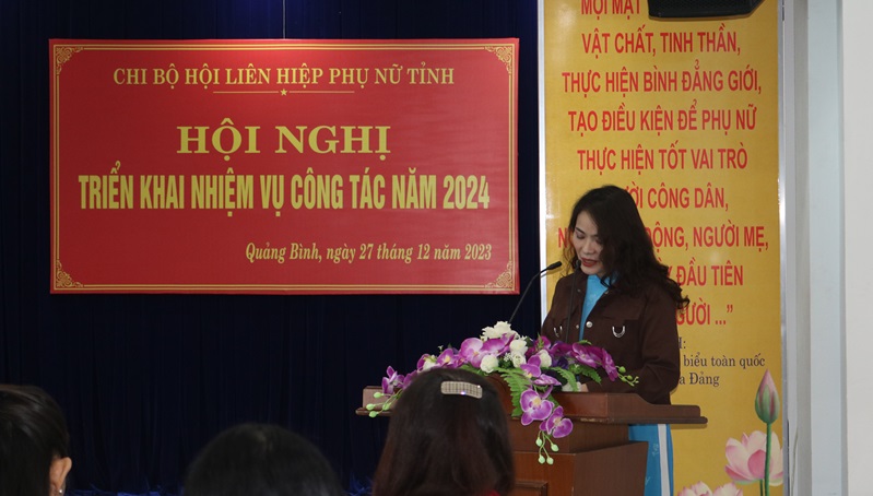 Phát biểu chỉ đạo tại Hội nghị, đồng chí Nguyễn Văn Sáu - Phó Bí thư Đảng uỷ Khối ghi nhận và biểu dương những thành tích xuất sắc Chi bộ cơ quan Hội LHPN tỉnh đã nỗ lực phấn đấu, tổ chức thực hiện trong năm qua. Đồng thời mong muốn trong năm 2024, Chị bộ bám sát hơn nữa phương hướng, mục tiêu đã đề ra để thực hiện có hiệu quả nhiệm vụ chính trị một cách thiết thực, hiệu quả; chú trọng chất lượng công tác tuyên truyền, giáo dục, nâng cao năng lực, trình độ mọi mặt cho cán bộ đảng viên. Đặc biệt, tập trung triển khai chủ đề năm 2024 “Tăng cường ứng dụng công nghệ thông tin trong hoạt động Hội”; tiếp tục thực hiện hiệu quả phương châm “Cùng nghe phụ nữ nói, cùng nói cho phụ nữ hiểu, cùng làm cho phụ nữ theo”; xây dựng các mô hình tập hợp, thu hút hội viên.