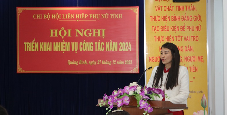 Năm 2023, Chi bộ chú trọng công tác lãnh đạo thực hiện nhiệm vụ chính trị, quốc phòng - an ninh: Triển khai thực hiện có hiệu quả chủ đề năm 2023 “Tập trung xây dựng cơ sở hội, trọng tâm là nâng cao năng lực cán bộ hội cơ sở” gắn với hai khâu đột phá “Đổi mới phương thức hoạt động Hội, trọng tâm là ứng dụng công nghệ thông tin” và “Tập trung xây dựng cơ sở Hội vững mạnh”; Phát động thực hiện các Đợt thi đua đặc biệt và nhiều hoạt động chào mừng các sự kiện lớn của đất nước, của Hội, của địa phương; Hỗ trợ phụ nữ phát triển kinh tế, hội nhập và vun đắp giá trị tốt đẹp của gia đình Việt Nam; Tham gia xây dựng Đảng, chính quyền, quốc phòng - an ninh, vận động xã hội thực hiện bình đẳng giới; Xây dựng tổ chức Hội vững mạnh, hoạt động chuyên nghiệp, hiệu quả. Công tác xây dựng Đảng được quan tâm, thực hiện tốt trên các mặt chính trị tư tưởng, tổ chức cán bộ; kiểm tra, giám sát; đẩy mạnh công tác dân vận và lãnh đạo các đoàn thể, xây dựng Chi bộ trong sạch vững mạnh, được Đảng ủy Khối ghi nhận, đánh giá cao. Cụ thể: Chương trình truyền hình trực tiếp “Áo dài-Về miền di sản Quảng Bình”; hội LHPN tỉnh và 8/8 huyện, thị xã tổ chức thành công hội nghị biểu dương Chủ tịch Hội LHPN cơ sở, chi hội trưởng, nhóm trưởng tín dụng-tiết kiệm tiêu biểu; các chương trình “Mẹ đỡ đầu-Kết nối yêu thương”, “Xuân ấm áp-Tết biên cương”, Ngày Phụ nữ sáng tạo - Khởi nghiệp và trao giải Cuộc thi “Phụ nữ khởi nghiệp, phát huy tài nguyên bản địa”;  “Đồng hành cùng phụ nữ biên cương”; chỉ đạo các cấp Hội ra mắt 09 mô hình điểm “Gia đình 5 có, 3 sạch - Nông thôn mới kiểu mẫu”, “Thu gom phân loại rác thải tại nguồn” tại cấp tỉnh, huyện, có 32 hộ gia đình đã gắn biển “Gia đình 5 có 3 sạch” và “Nhà sạch - Vườn mẫu”; tổ chức Lễ phát động nhân rộng “Hàng rào xanh, xây dựng nông thôn mới”... Với những thành tựu nổi bật đó, Hội LHPN tỉnh Quảng Bình vinh dự là 1 trong 8 đơn vị trong toàn quốc được Trung ương Hội LHPN Việt Nam tặng cờ thi đua “Đơn vị dẫn đầu” cùng nhiều tập thể, cá nhân được khen thưởng.