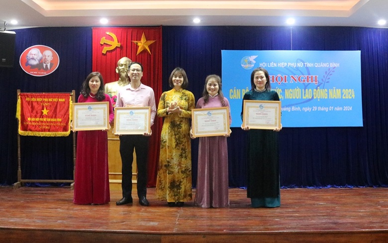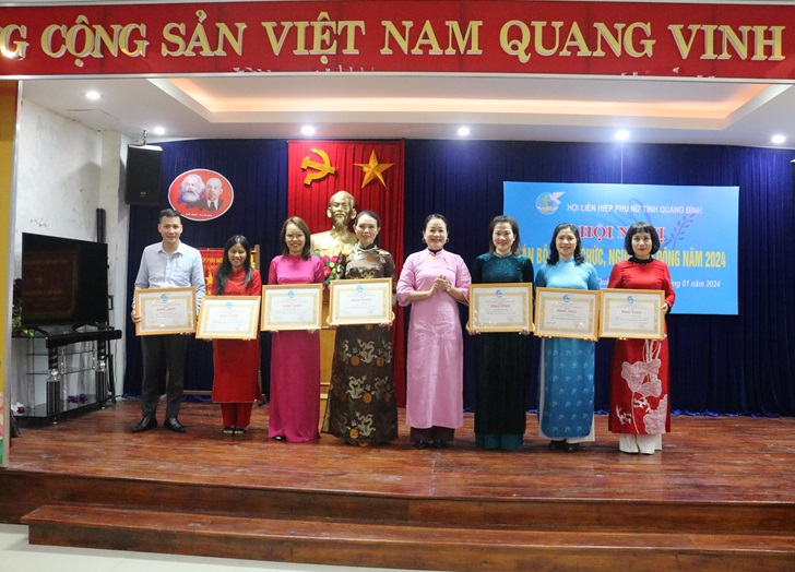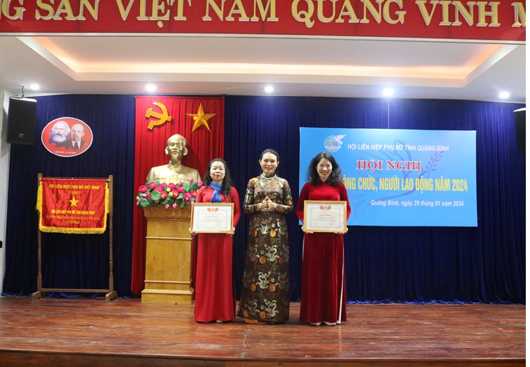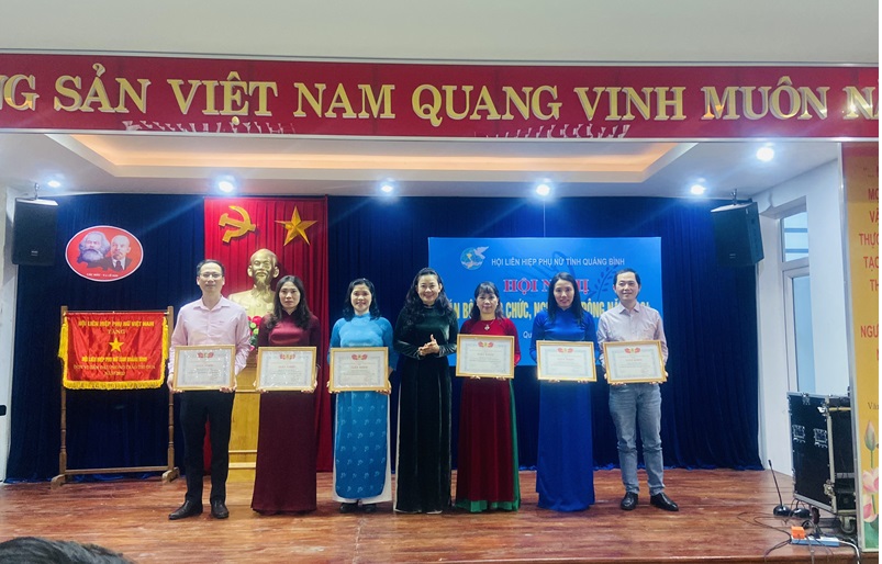 Kết quả: Hội LHPN tỉnh Quảng Bình vinh dự là 01 trong 8 tập thể được trao tặng Cờ thi đua “Đơn vị dẫn đầu” toàn quốc của Trung ương Hội LHPN Việt Nam, có 05 tập thể đạt Lao động tiên tiến; 01 tập thể được UBND tỉnh tặng danh hiệu Tập thể lao động xuất sắc; 01 cá nhân được Chủ tịch UBND tỉnh tặng Bằng khen; 06 cá nhân đạt danh hiệu Chiến sĩ thi đua cấp cơ sở; 37 cá nhân đạt danh hiệu “Lao động tiên tiến”; 04 tập thể, 07 cá nhân được Ban Thường vụ Hội LHPN tỉnh tặng Bằng khen; 01 cá nhân được Ban Chấp hành Công đoàn Viên chức tỉnh tặng giấy khen; 02 tập thể và 6 cá nhân được Công đoàn cơ quan Hội LHPN tỉnh tặng giấy khen.