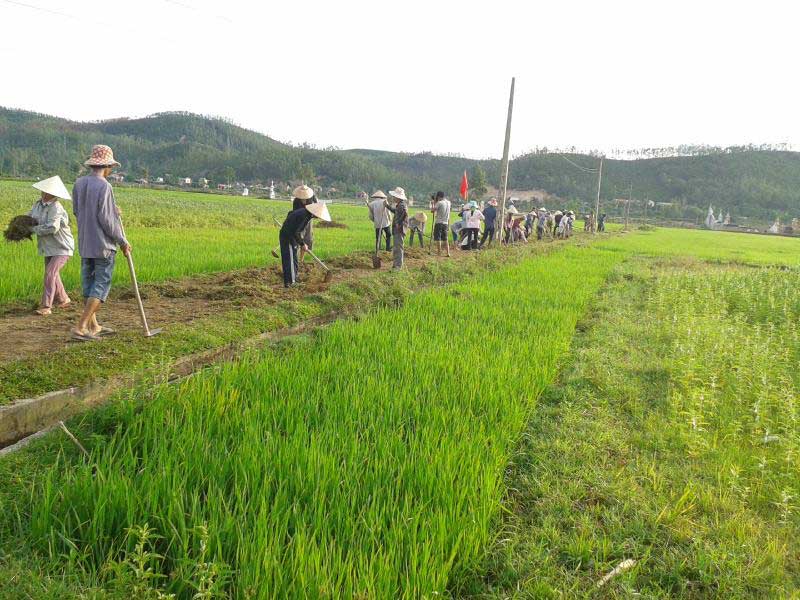Hội viên phụ nữ và nhân dân thôn Thuận Hòa, xã Quảng Trường làm vệ sinh