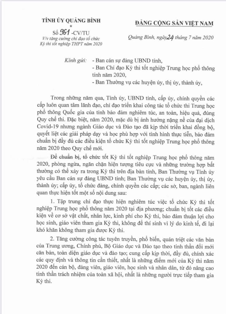 - Quảng Bình triển khai quyết liệt các phương án phòng chống dịch bệnh Covid-19 (30/07/2020)