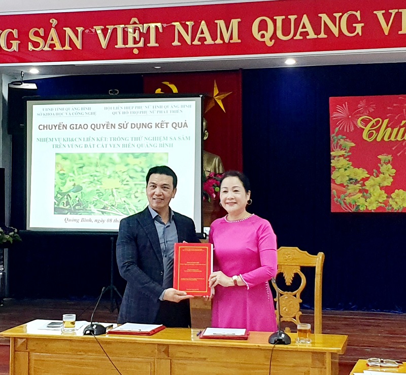 Sáng ngày 8/2/2023, Sở Khoa học Công nghệ đã tổ chức chuyển giao quyền sử dụng kết quả nhiệm vụ khoa học và công nghệ về “Trồng thử nghiệm Sa Sâm trên vùng đất cát ven biển Quảng Bình” cho Quỹ Hỗ trợ phụ nữ phát triển, Hội LHPN tỉnh Quảng Bình.