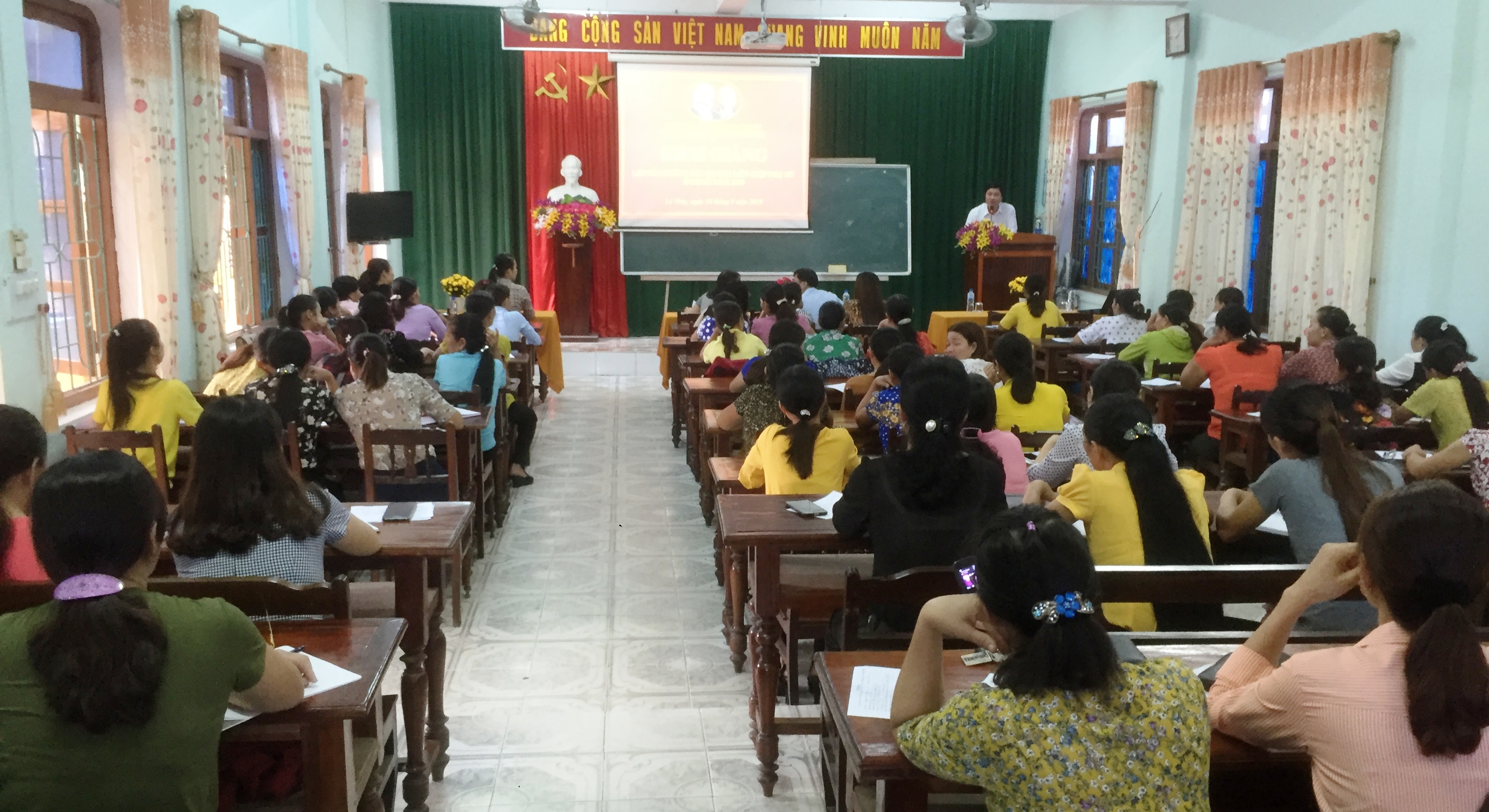 Ngày 18/9/2019, Hội LHPN huyện Lệ Thuỷ phối hợp với Trung tâm Bồi dưỡng chính trị huyện tổ chức tập huấn nghiệp vụ công tác Hội cho 80 học viên là cán bộ Hội phụ nữ tại 28 xã, thị trấn trên địa bàn và chi hội PN Công an huyện.