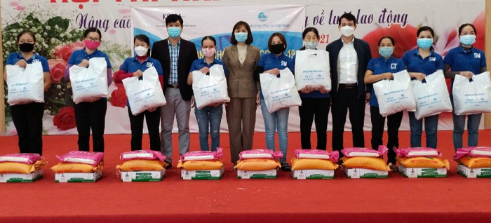 735 phần quà được trao cho nữ công nhân lao động, hội viên phụ nữ có hoàn cảnh khó khăn, bị ảnh hưởng bởi đại dịch Covid-19